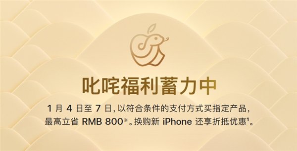 快科技1月2日音信,元旦刚过,苹果中国官网公布出了“怒斥福利”新年促销行径,将于1月4日-7日开启。